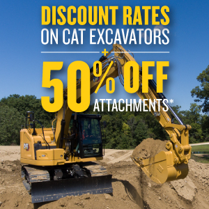 Discount Rates on CAT Excavators & 50% off Excavator Attachments.